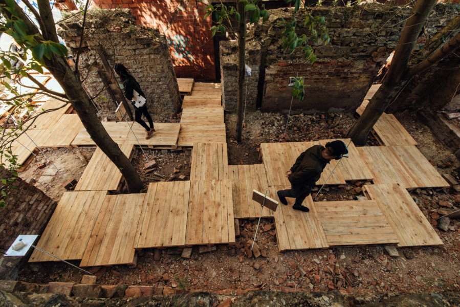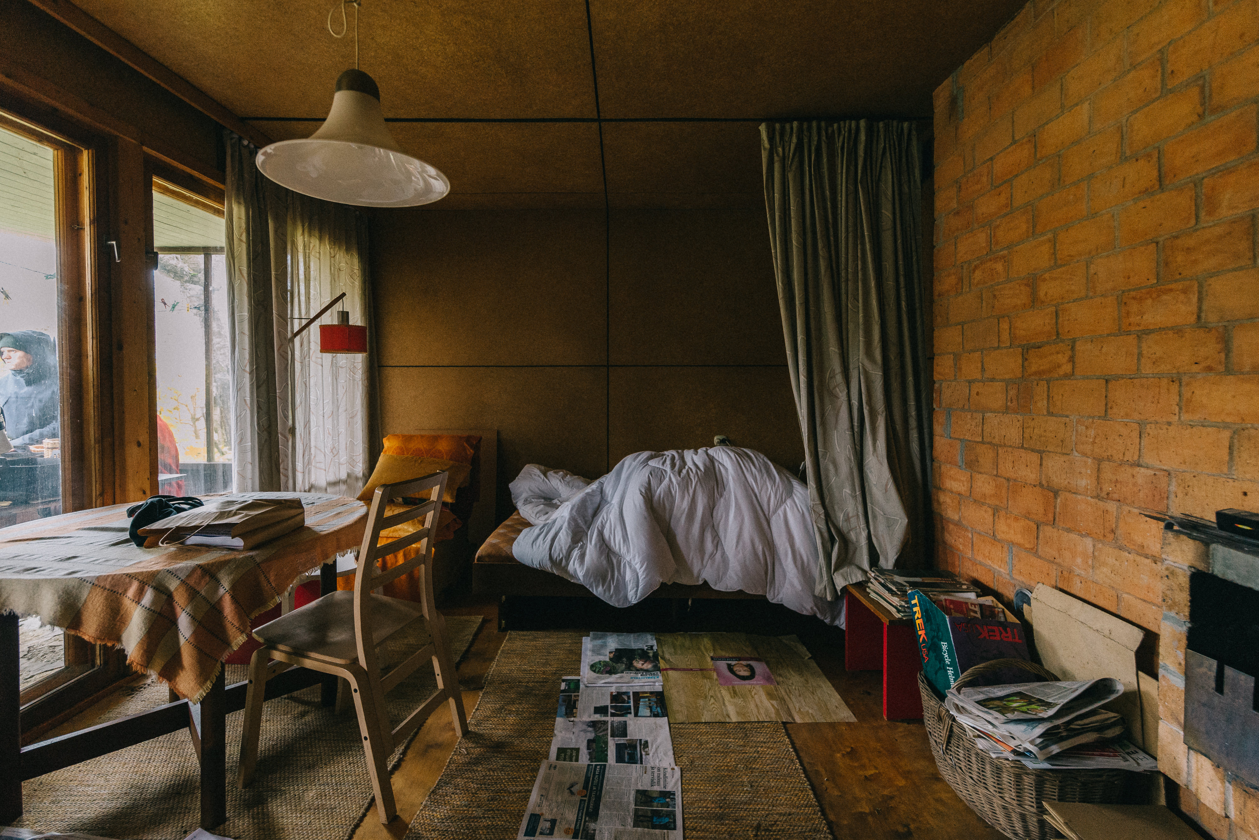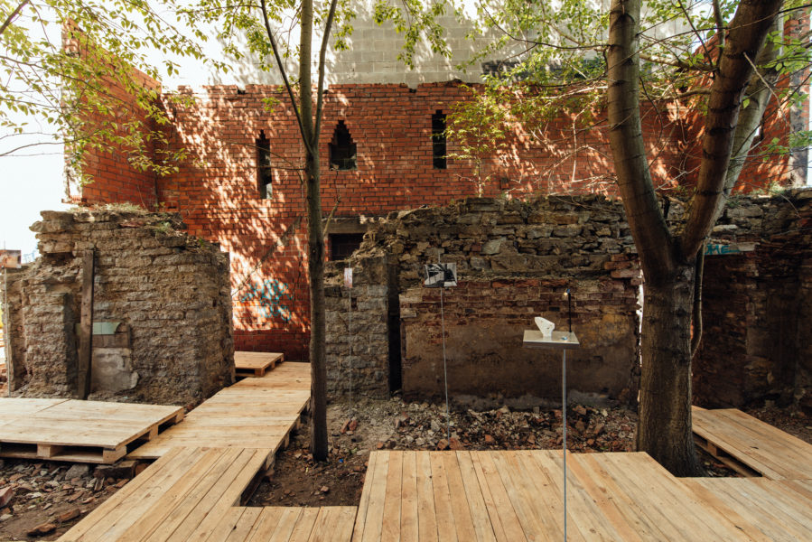 This was the first exhibition we made in the series while in the group ‘‘Arhiabi/Archi-help’’, where we showed our second year private house projects in one our the plots we had for them. It was a ‘‘hole’’ or a empty space inside of a functioning area, which we firstly cleaned of the debris it had collected over the years and then prepared it for a exhibition area, building the more walkable ground for it etc. Our idea behind it was that you could walk through it like you would walk through a home, including headphones where you could listen to homely sounds whilst looking at our home/private building for families projects.