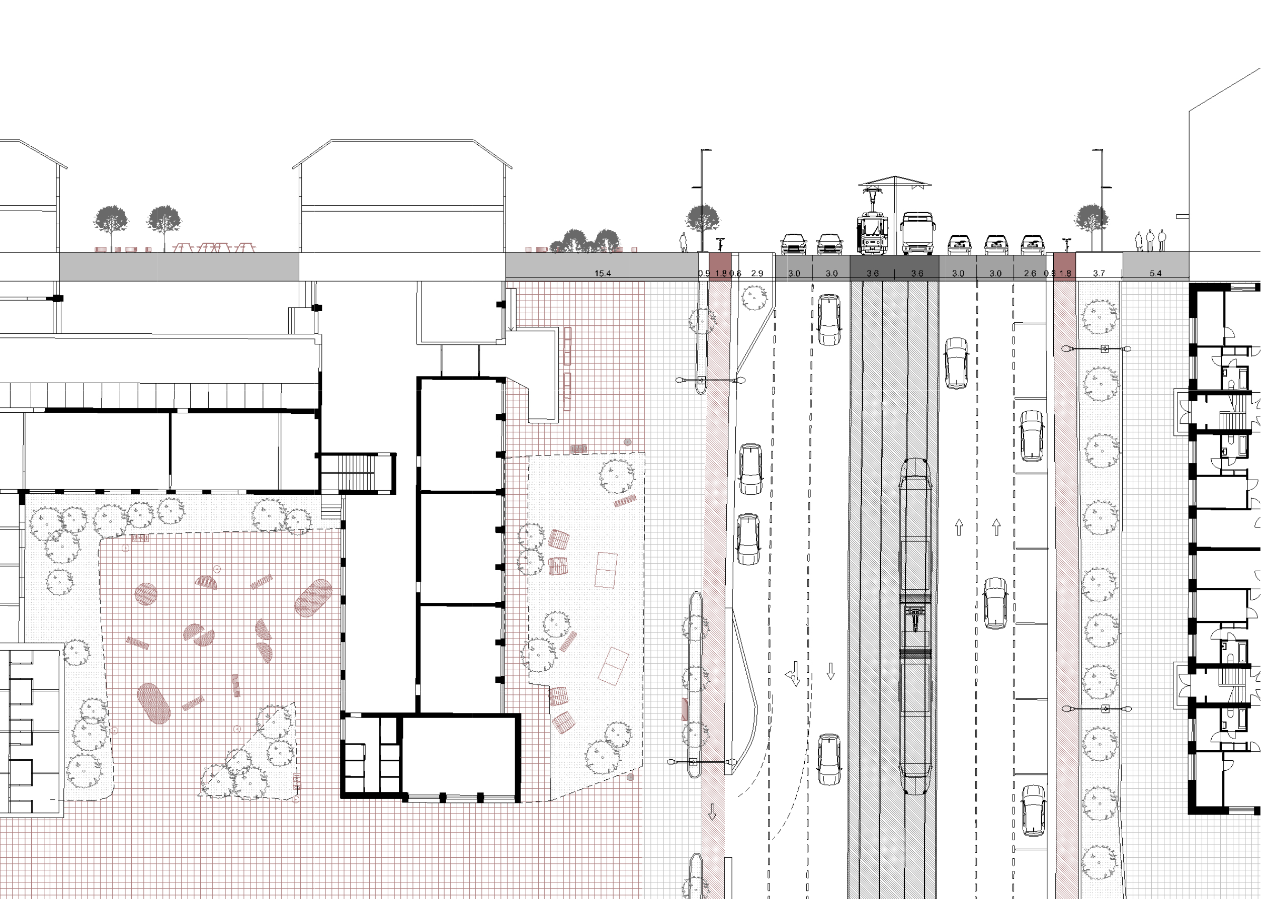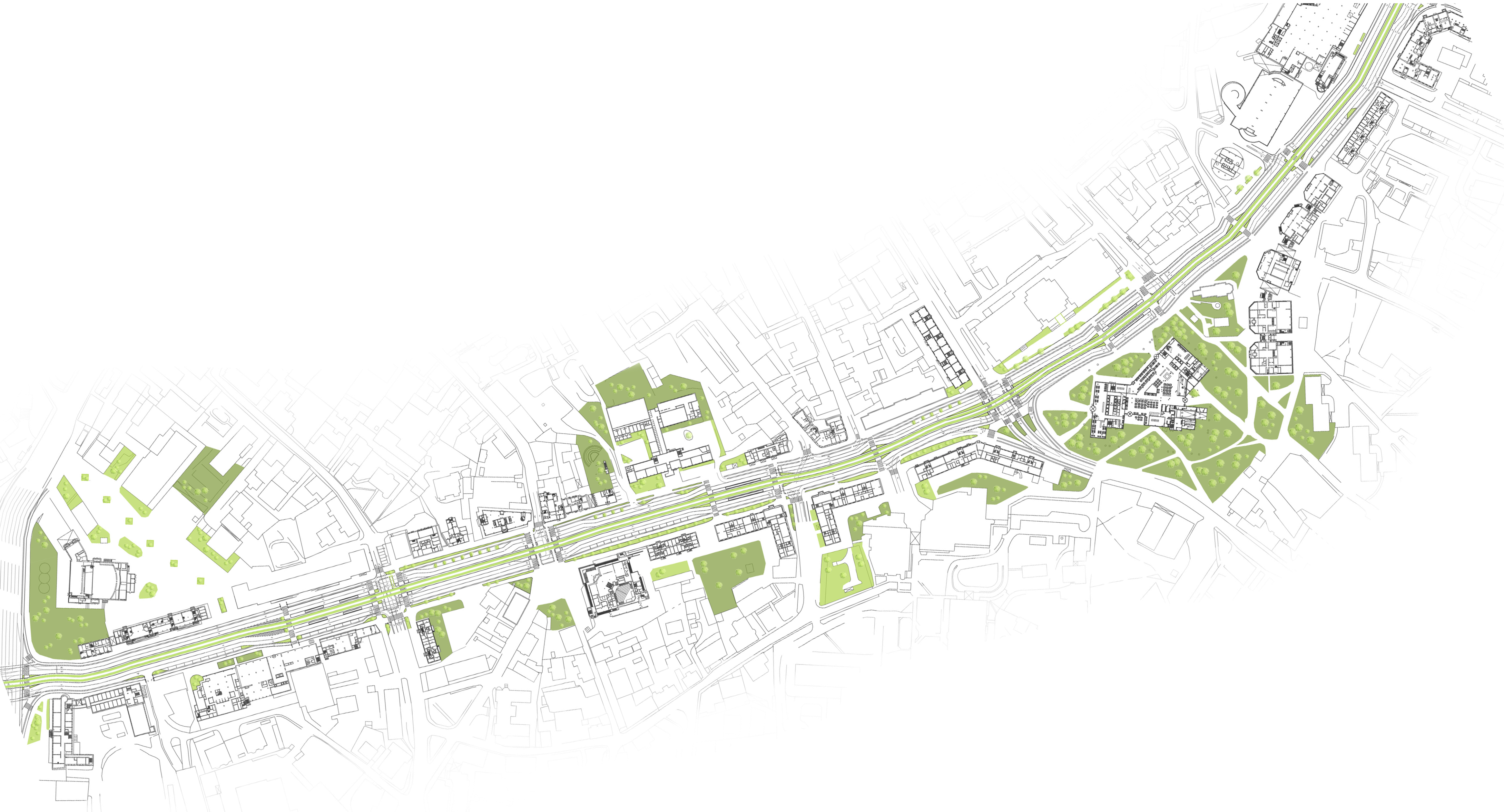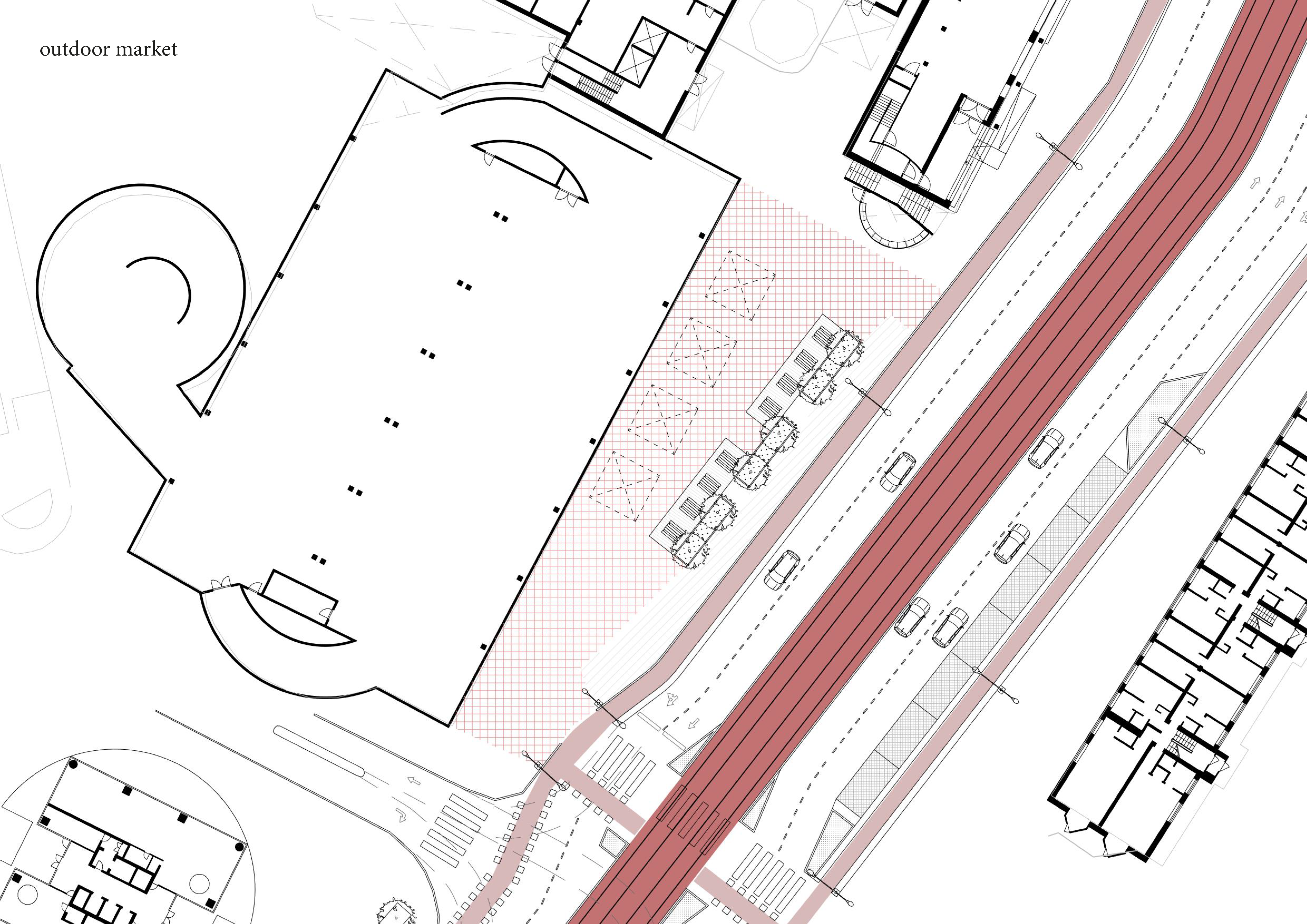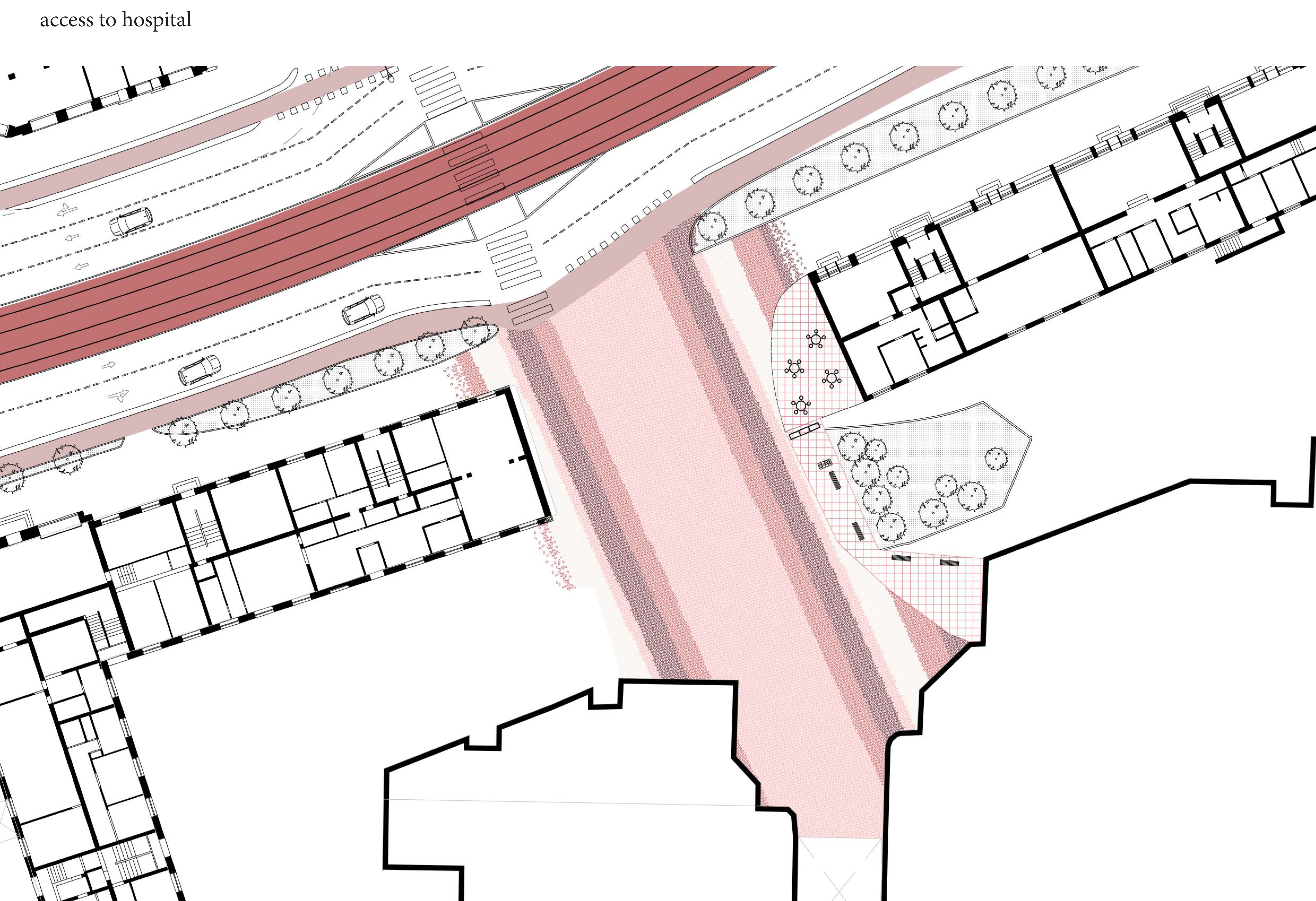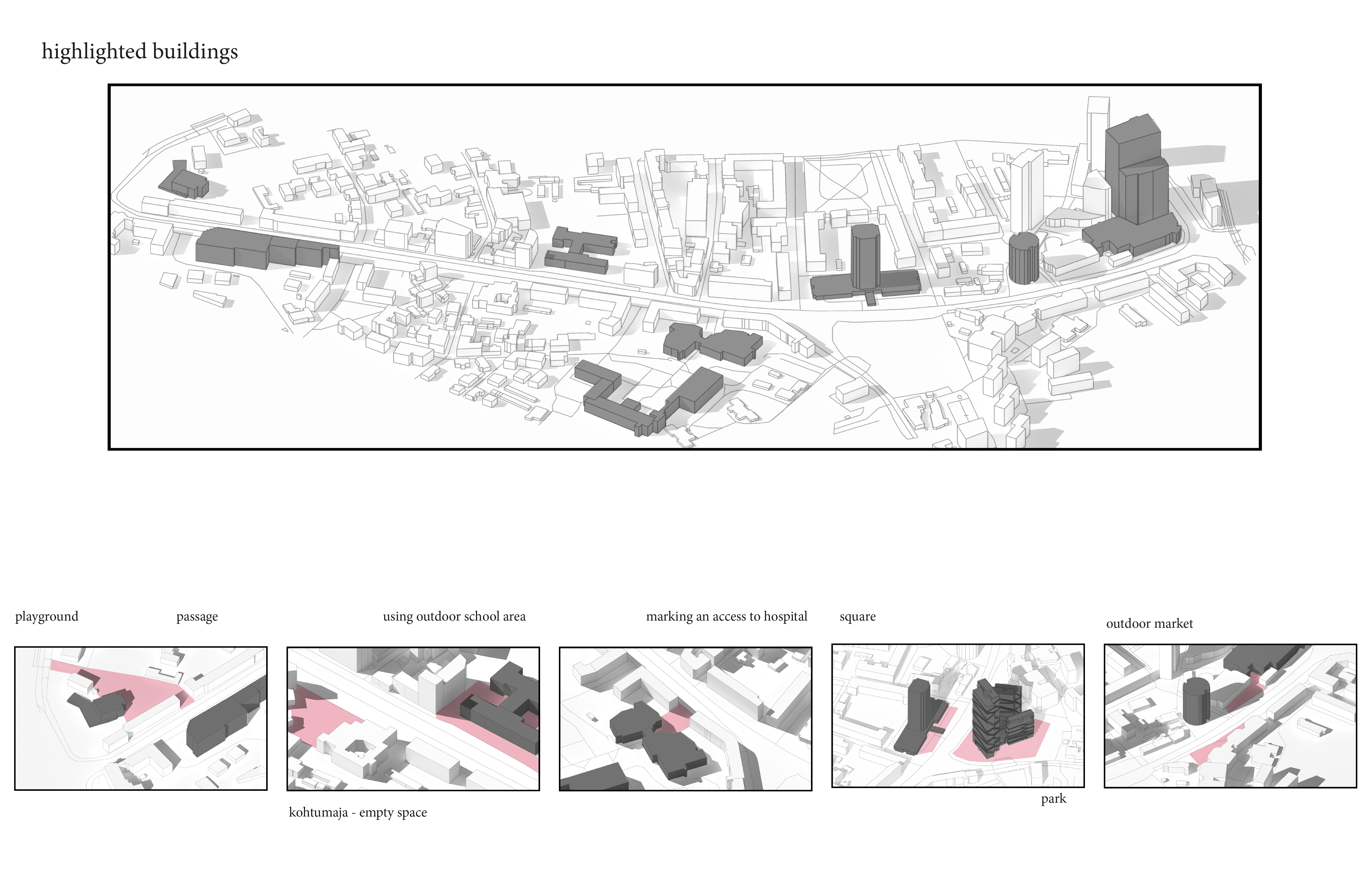 Second move was creating pockets of activities in different parts of the street, offering free spaces of hanging out areas. These were for example the entrance area for a hospital, around school, the ends of the streets and a park area surrounding a new office building.