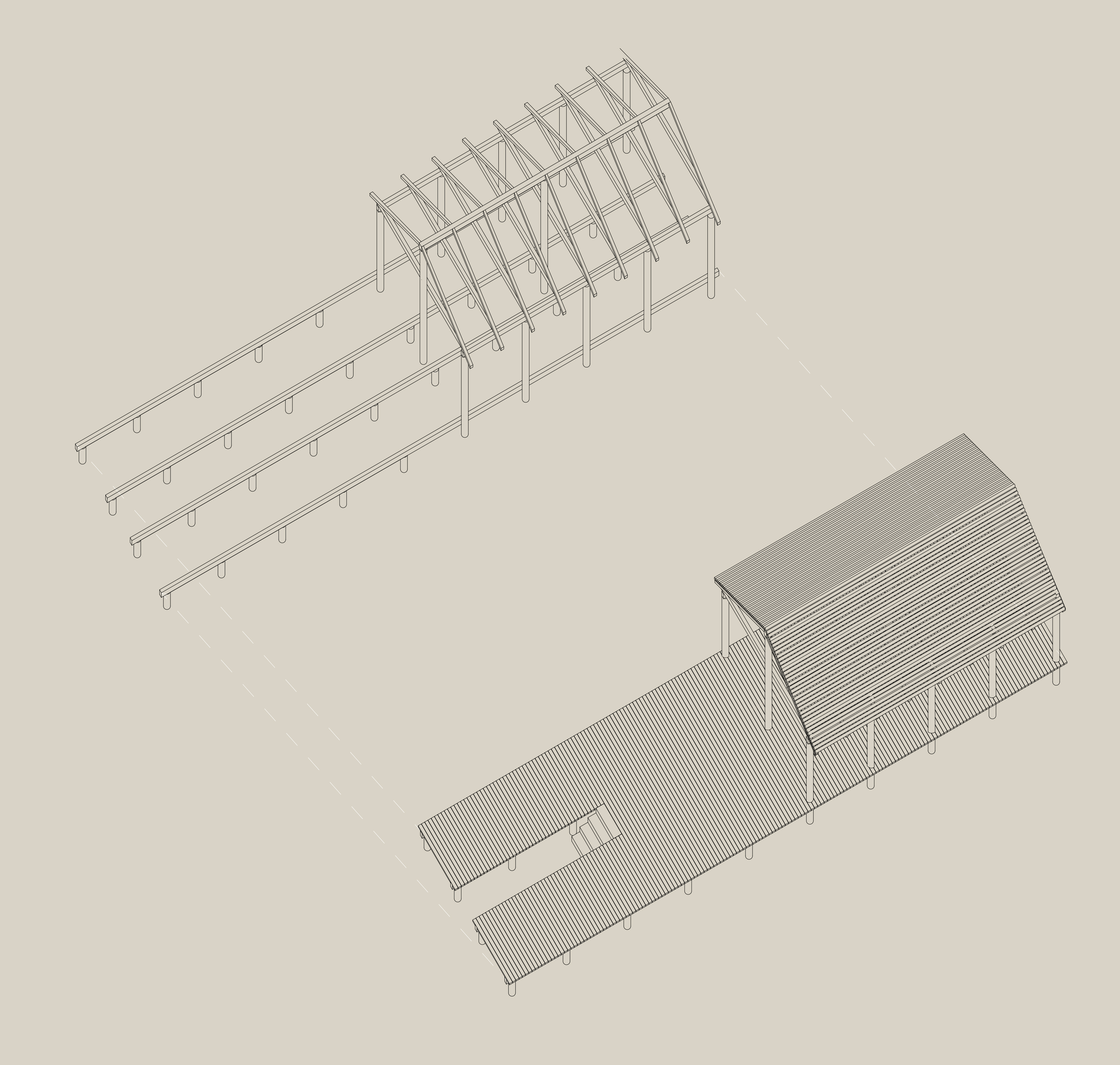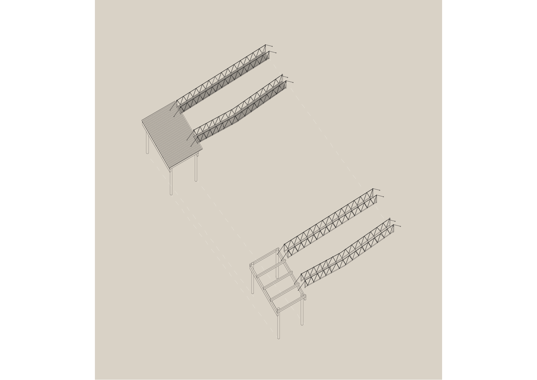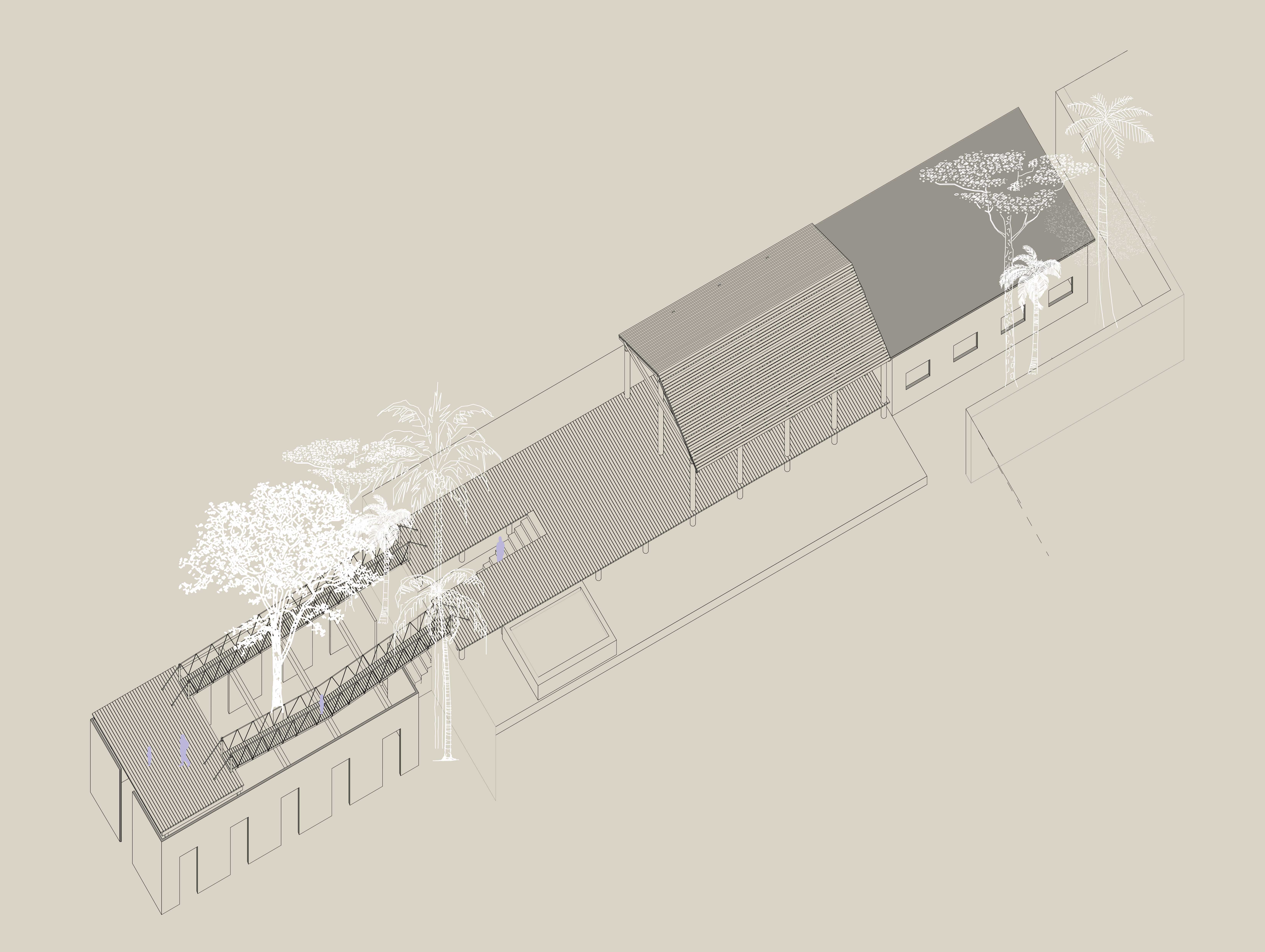 Struktuur oli ette nähtud ühendama kahte hoonet omavahel, mida hetkel omavahel ühendab ning ka eraldab nende vahela suv betoonväljak. Üks hoone paikneb sellest madalamal tasemel, nii, et väljakule ehitades saaks see pikeneda tolle hoone peale katusevormi moodustades. Hetkel on väljak kasutusel varjualusena meeste jaoks, kui nad põllutööst puhkust vajavad või oma saadusi puhastavad, beetlipähklid närivad jmt, ning samuti see omab merevaadet läbi puudevõra(kalde tõttu). Otsustasin kasutada seda ala, ning muuta seda veelgi kasutajasõbralikumaks, ehk ka laiendada kontignenti, kes seal käiksid. Et seda teha, otsustasin, et võimaldades ajutist varju, mis oleks ehitatud bambusest, mis kasvad teeradadel, ühendades kohta ümbritsevate küladega. Ajutist, sest siis on võimalik varjualust tormijärgselt taastada vanal/uuel moel või lastes sel hävineda, juhul kui kasutust ei leidu. Varjualune peab pakkuma kaitset päikese eest, pakkuma vett, puhastamaks põllusaadusi ning joogiveeks, kui ka võimalust tuleaset kasutada, et süüa valmistada. Funktsioon võib muutuda läbi aja ka päeva jooksul, kasutades seda ‘htusel ajal kohtumispaigana, süüa valmistades, muusikat mängides või metsas pesitsevaid öökulle vaadeldes.