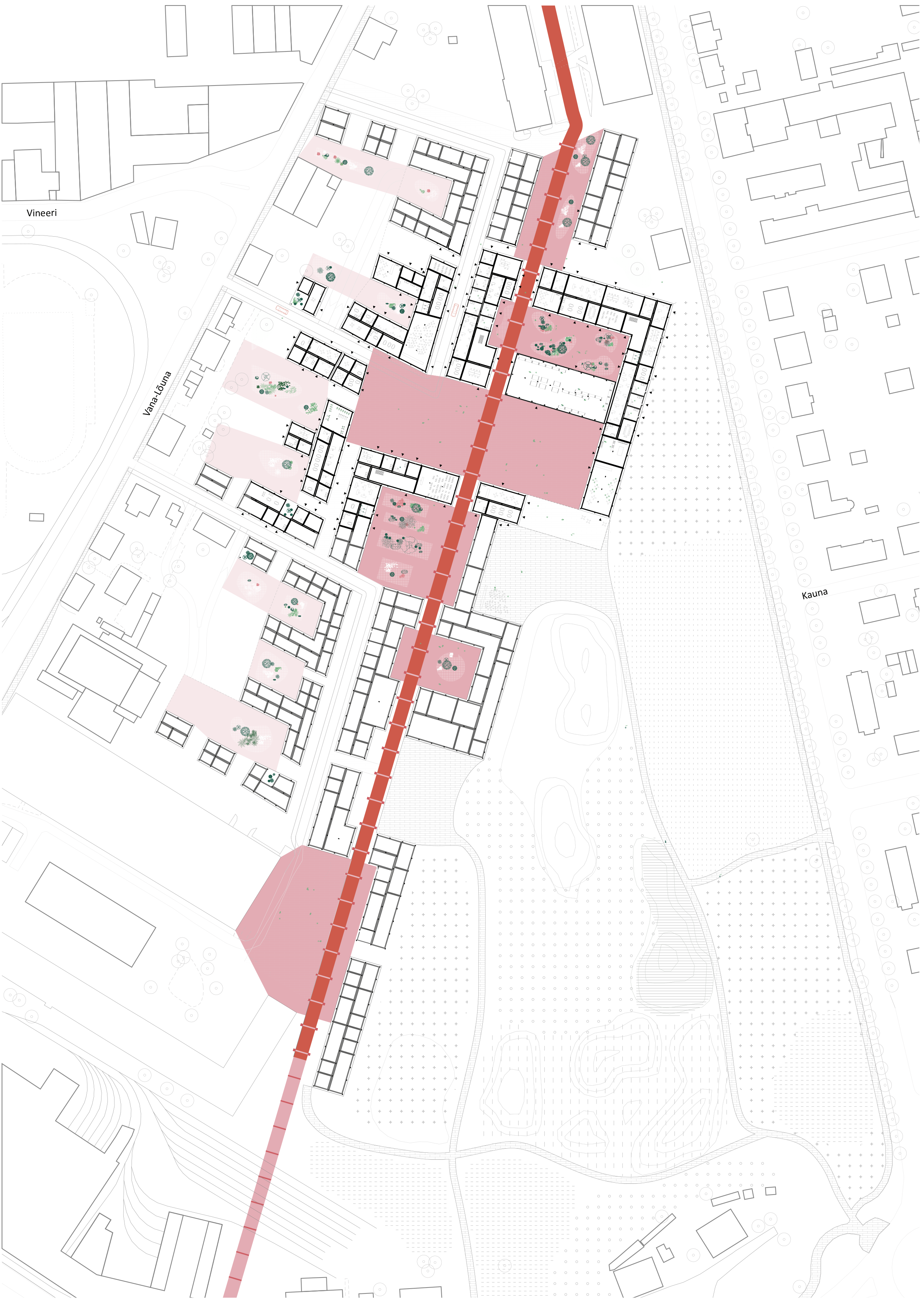 The urban planning project is situated in Veerenni, a developing area in Tallinn, Estonia. Its main characteristics include former factory buildings and area with wild wasteland-like nature.