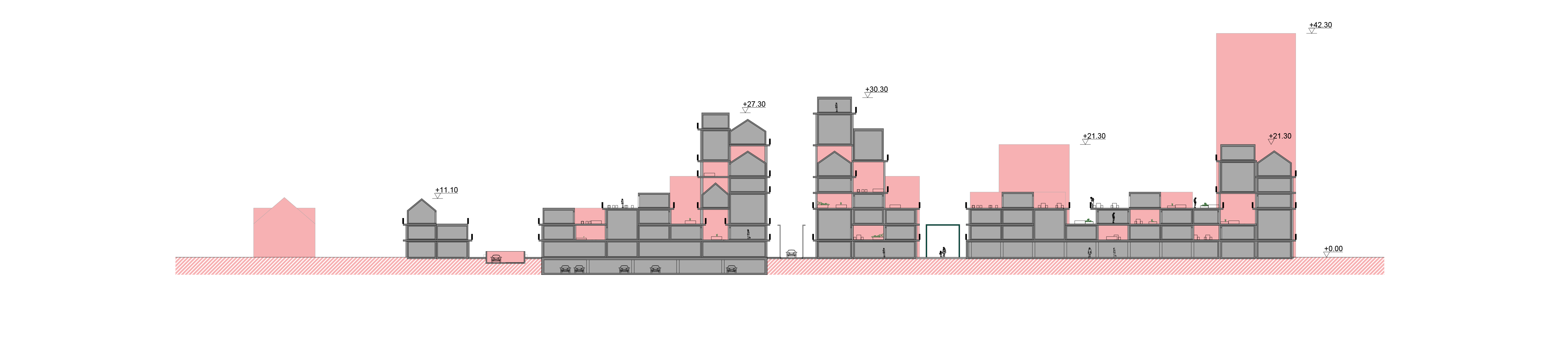With the housing planning, the building height was similar to the existing nearby houses on the west side and grew in height on the east, close to the nature area.