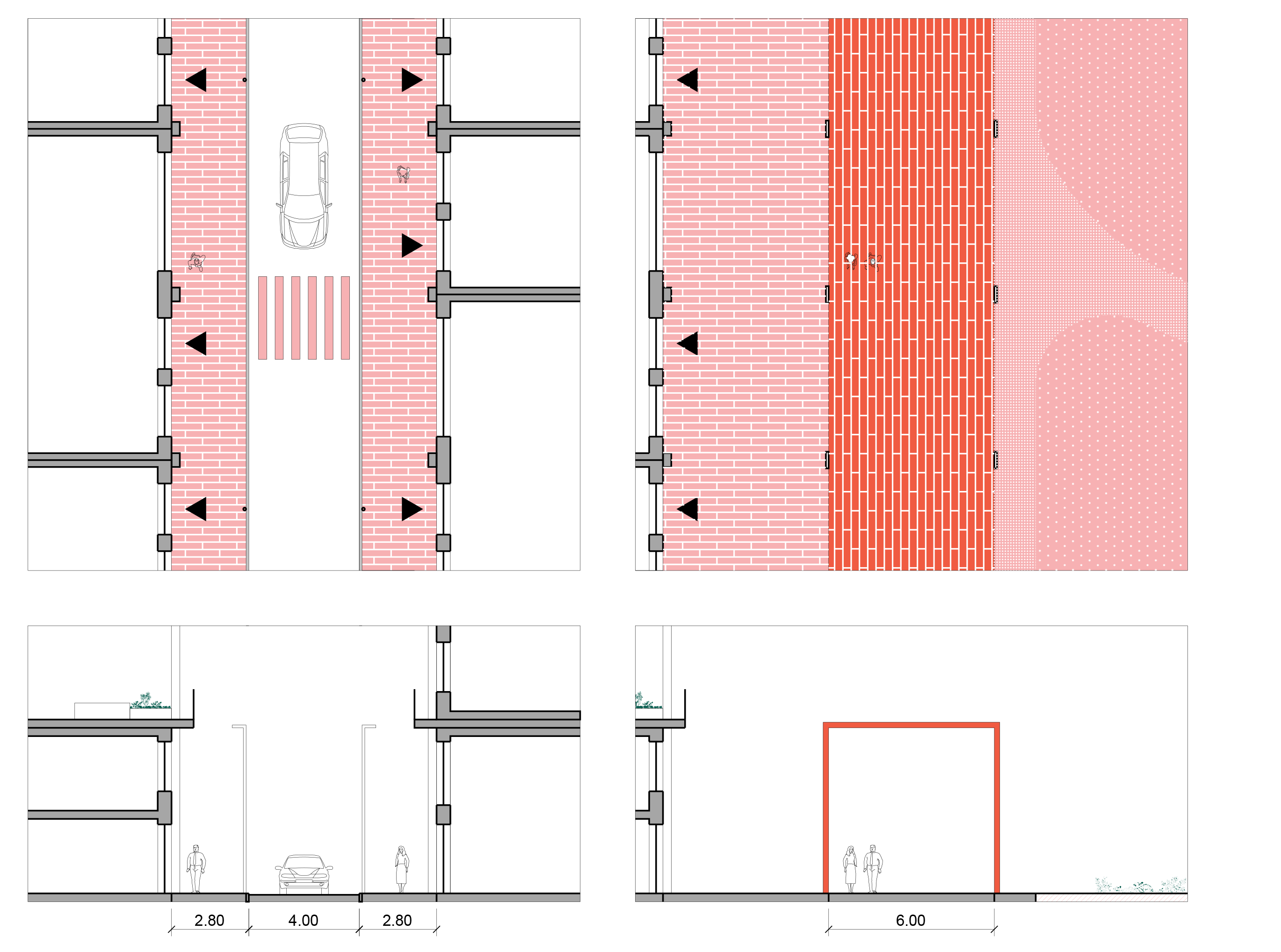 Kasutusviiside üleminek toimub ühes kõrguste ning hoonetüüpidega, omades avalikke funktsioone esimestel korrustel ja avalike väljakualade lähistel. Need sulanduvad koos poolavalike osadega erahoonete hulka ülemistel korrustel ning madalamal hoonestusel väiksemate hoovide ümber.